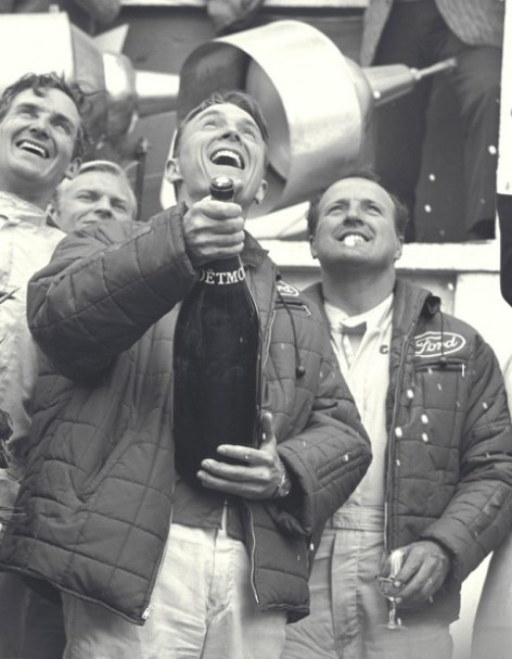 For some, Gurney’s greatest victory was the one he shared with A.J. Foyt, when the pair won the 1967 24 Hours of Le Mans in a Ford GT-40 Mk. IV, beating the second-place Ferrari 330 P4 by four laps. It was the first all-American victory in the French classic: American drivers in an American-built car for an American team. (The GT-40 Mk. IIs that won Le Mans in 1966 and the Mk. I’s that won in ’68 and ’69 were built in England, with American engines.) It was on the podium where Gurney invented another racing innovation: spraying the celebratory champagne.